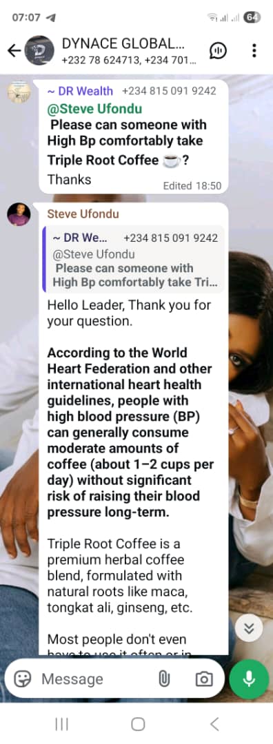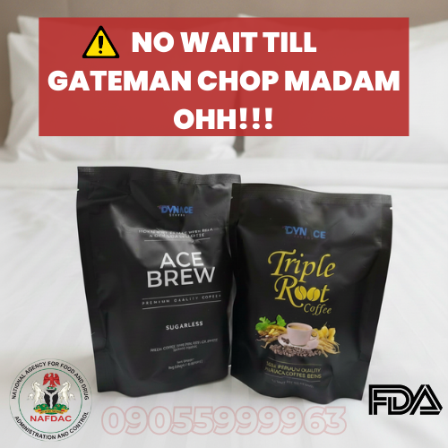 Triple Root & Acebrew Coffee are manufactured by DYNACE GLOBAL FACTORY in MALAYSIA and Certified by FDA in the United States of America and Nafdac in Nigeria